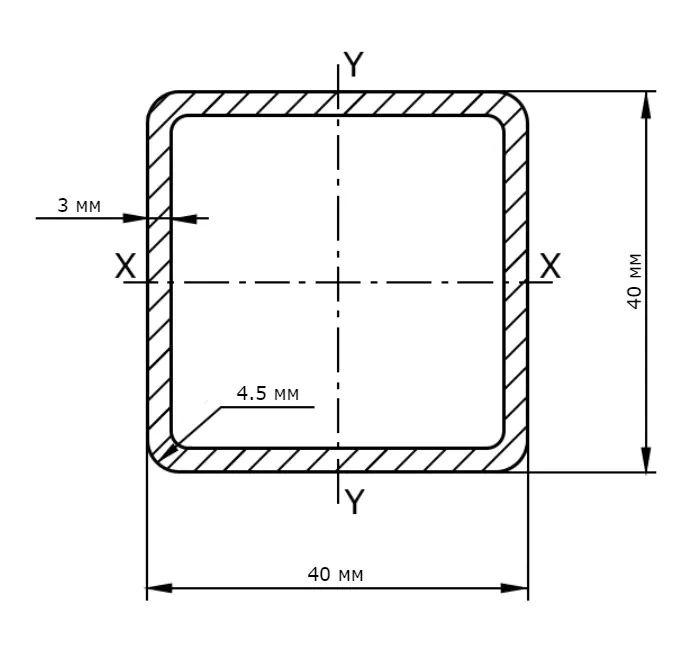Стальная профильная труба квадратного сечения 40х40х3 мм. Используется при монтаже внутренних и наружных каркасов зданий и сооружений, строительных лесов, опор, ограждений, заборов, дверей, теплиц, рекламных щитов и т. д. Труба производится из углеродистой стали марки Ст3ПС. Трубы могут иметь отклонения от заявленной толщины: по ТУ — до 25%, по ГОСТу — до 12,5%.