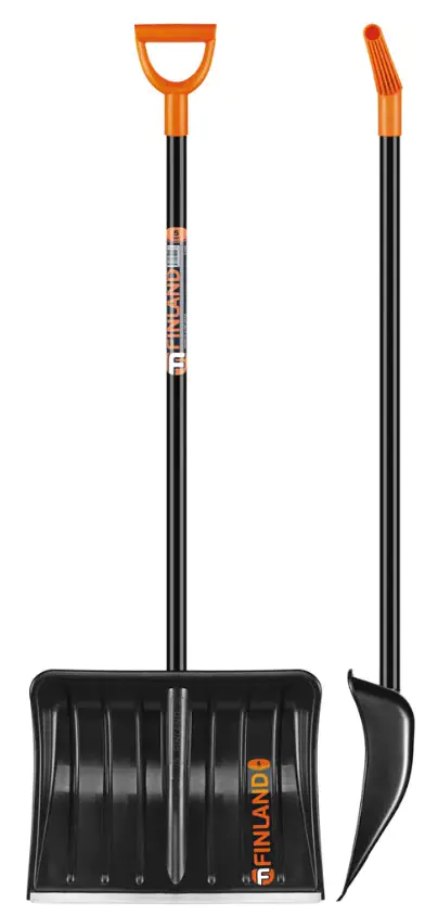 Лопата снегоуборочная широкая Finland 1358-Ч с черенком используется для очищения больших площадей. Оснащена ковшом размером 50х39 см с бортами 8 см из высококачественного, морозоустойчивого и ударопрочного пластика, черенком из древесины высшего сорта и пластиковой рукояткой. Общая высота изделия 147 см.