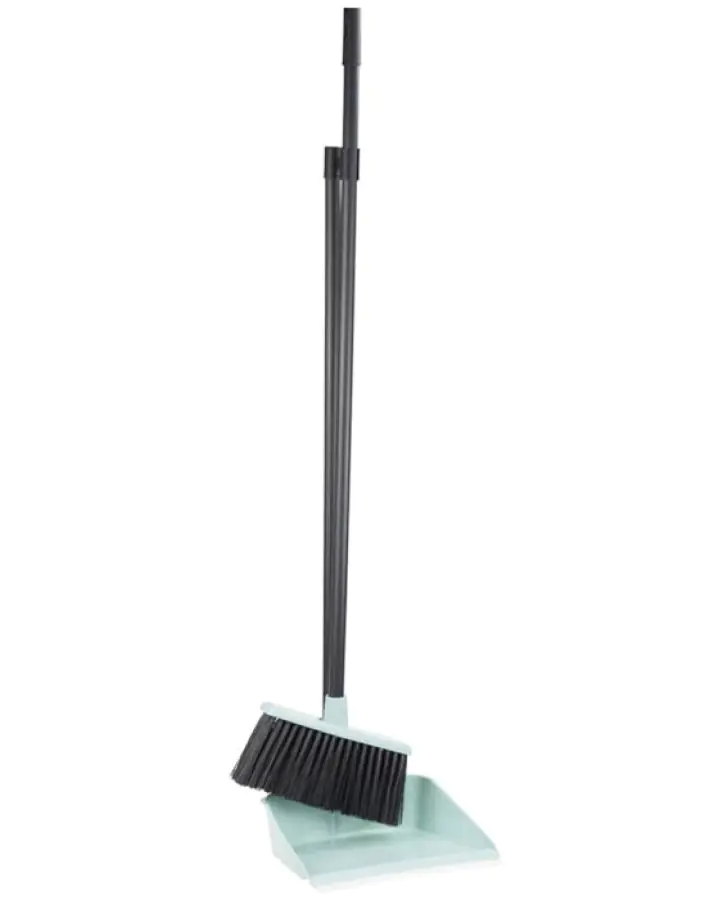 Набор для уборки, состоит из щетки и совка с черенками. Резинка на совке обеспечивает более качественный сбор мусора. Удобный в использовании благодаря длинным ручкам.