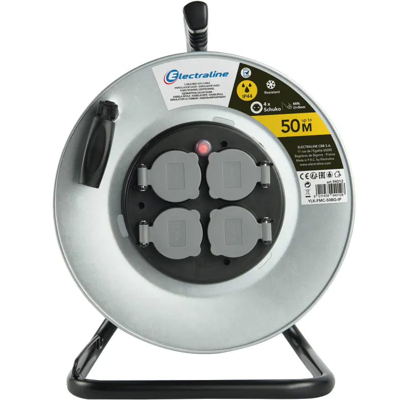 Удлинитель на катушке без кабеля 4 розетки Electraline 94012 служит для подключения электроприборов вдали от стационарной розетки в бытовых условиях эксплуатации. Поставляется без кабеля. В зависимости от сечения провода катушка вмещает до 50 м.