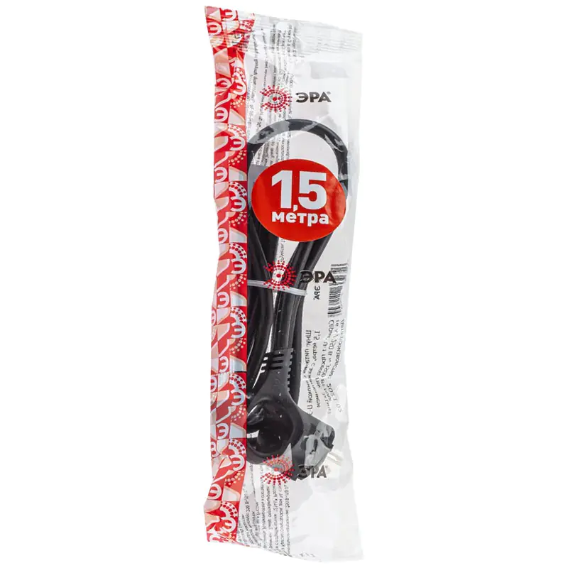 Шнур сетевой с вилкой с/з ЭРА черный 1,5 м