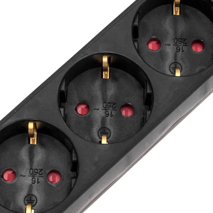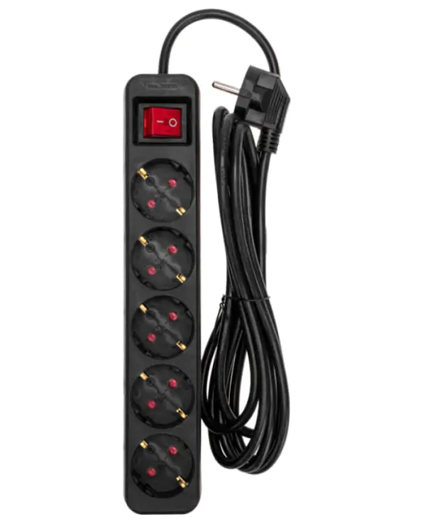 Удлинитель оснащен защитными шторками, которые предназначены для предотвращения случайного попадания пыли, влаги или посторонних предметов в гнезда удлинителя, что способствует долговечности самого устройства и подключенных к нему приборов, а также обеспечивает защиту от поражения электрическим током. Максимальная нагрузка – 1300Вт. Сечение провода – 3х1,0мм². Тип вилки – угловая. Цвет удлинителя – черный.
