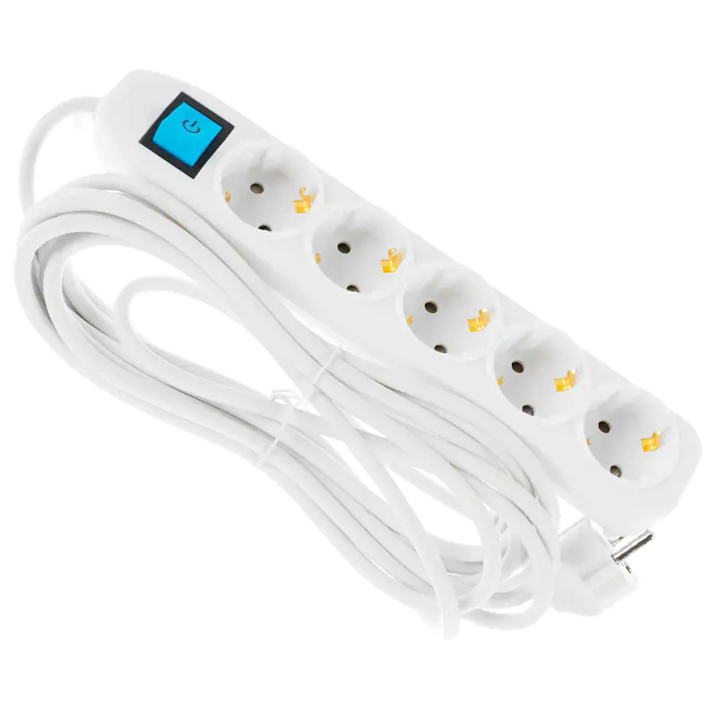 Сетевой удлинитель с выключателем 5 м Electraline 62169 предназначен для работы в бытовых и офисных помещениях. Колодка выполнена из прочного пластика и оснащена выключателем. Обладает пятью гнездами с защитными шторками, что делает изделие безопасным и функциональным.