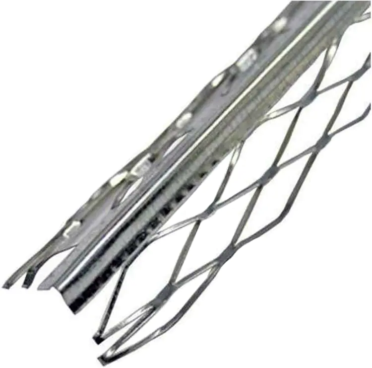 Угол для мокрых штукатурок 2,5м. Применяется при формировании угла из неровного откоса или кирпичной кладки. Данный угол устанавливается во время штукатурных работ. Сетка вокруг угла является своего рода просечной сеткой, которая помогает закрепиться углу на основании и предотвратить трещины в будущем.