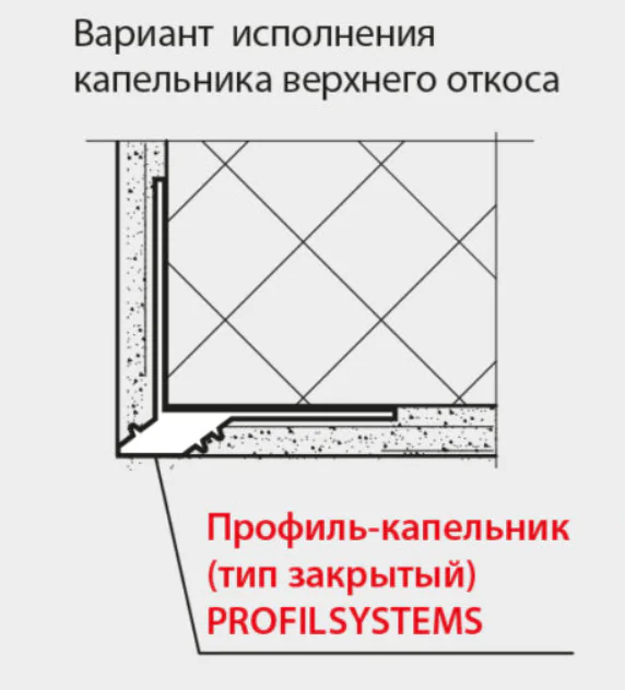 • Профиль обеспечивает отвод воды и конденсата с вертикальных зон, исключая попадание влаги в застойные горизонтальные участки.