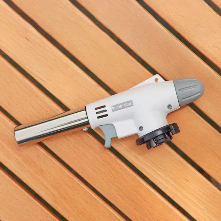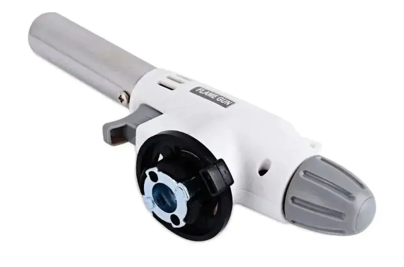Портативная газовая насадка-горелка "Flame Gun". Энергоносителем для насадки-горелки служит обычный туристический газовый баллончик. Сопло - с керамическим кольцом, создает устойчивое, не подверженное воздействию ветра и дождя пламя температурой 1500°С. Используется как автономный источник тепловой энергии для самых разнообразных работ. Легко крепится к цанговому туристическому газовому баллону.