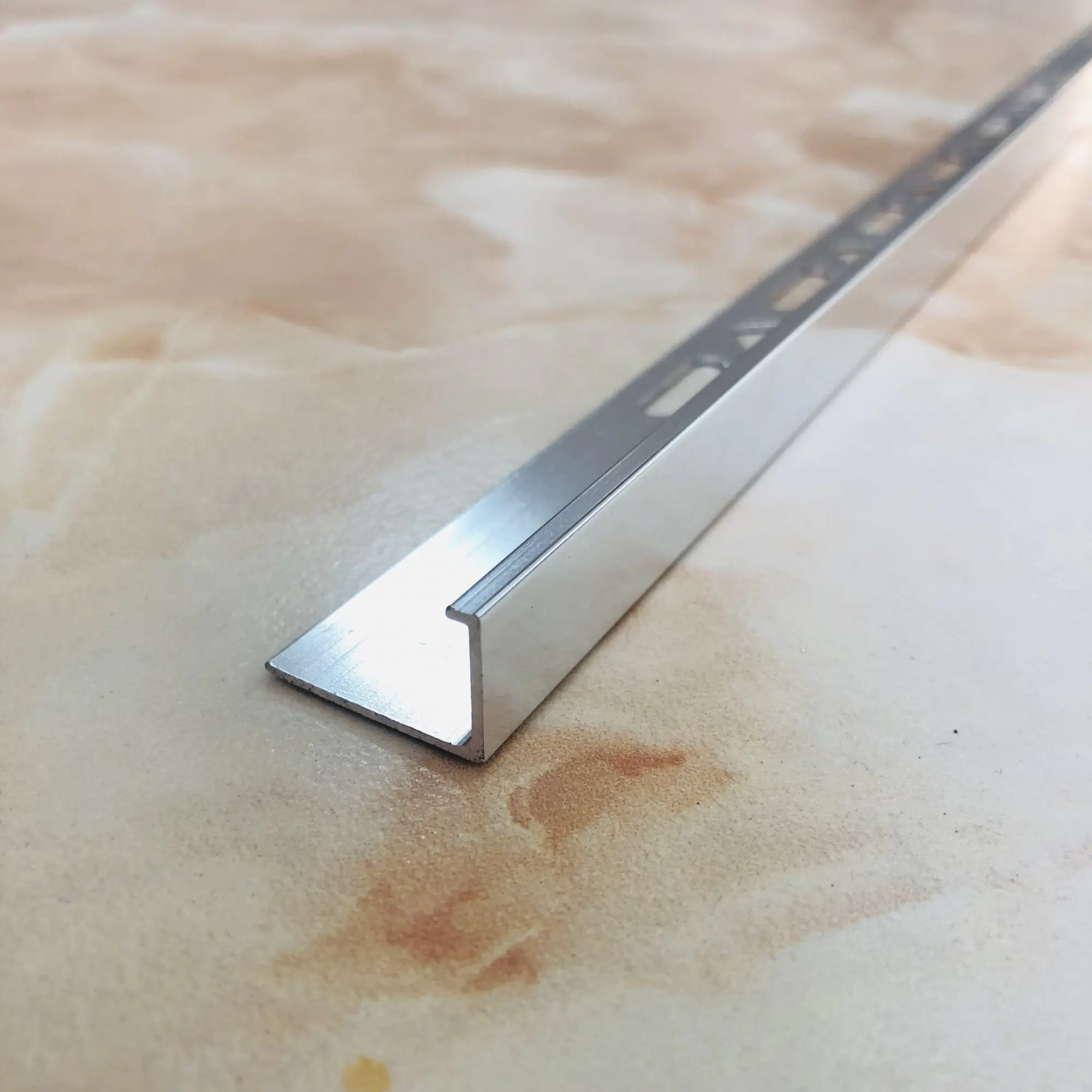Кромочный угловой алюминиевый L-образный профиль, используется при работе с прямыми и угловыми плоскостями для окантовки и придает им эффекта завершенности. Часто используется при соприкосновении двух разных напольных поверхностей. Длина 2,7 м.