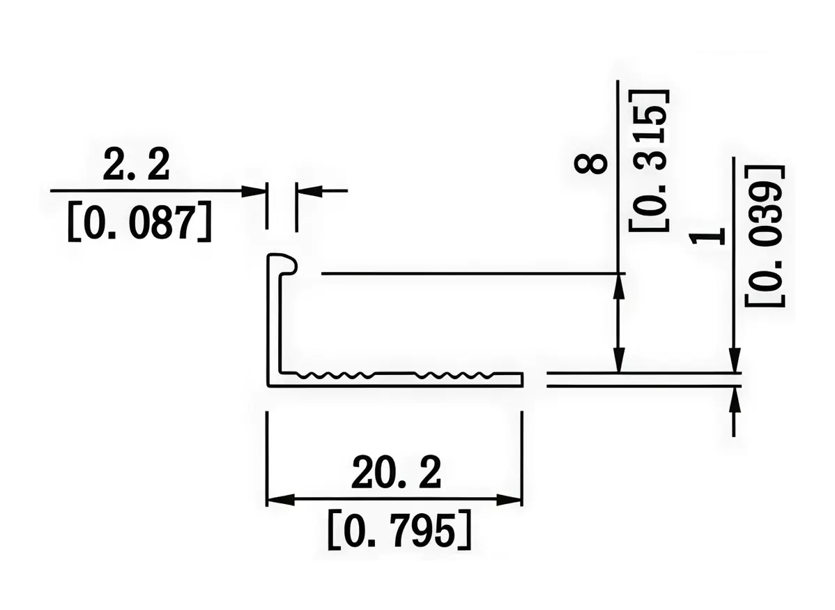 Кромочный угловой алюминиевый L-образный профиль, используется при работе с прямыми и угловыми плоскостями для окантовки и придает им эффекта завершенности. Часто используется при соприкосновении двух разных напольных поверхностей. Длина 2,7 м.