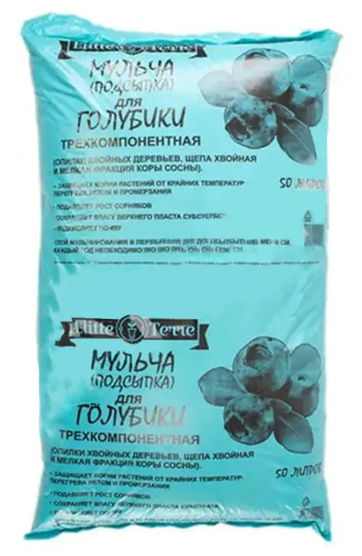 Мульча для голубики Elitte Terre – это трехкомпонентная подсыпка для голубики. В состав входят: опилки хвойных деревьев, щепа хвойная и мелкая фракция коры сосны. Мульча защищает корни растений от крайних температур: от перегрева летом и промерзания зимой. Подавляет рост сорняков. Сохраняет влагу верхнего пласта субстрата. Подкисляет почву.