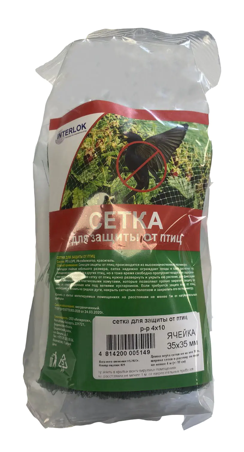 Сетка защитная от птиц Interlok 4х10 – предназначена для защиты урожая от птиц.