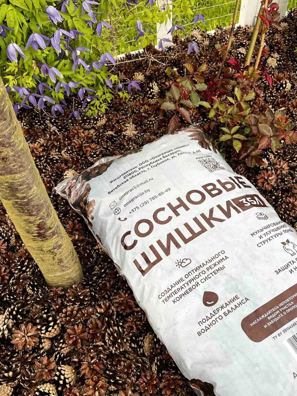 Декоративный и функциональный природный материал для мульчирования и оформления участков. Экологически чистый продукт, который придаёт участку аккуратный, ухоженный вид, помогает сохранять влагу в почве, защищает растения от сорняков и перегрева, а также улучшает структуру грунта. Шишки раскрываются и закрываются в зависимости от уровня влажности - благодаря этому участок выглядит живым, что создаёт уют и хорошее настроение.