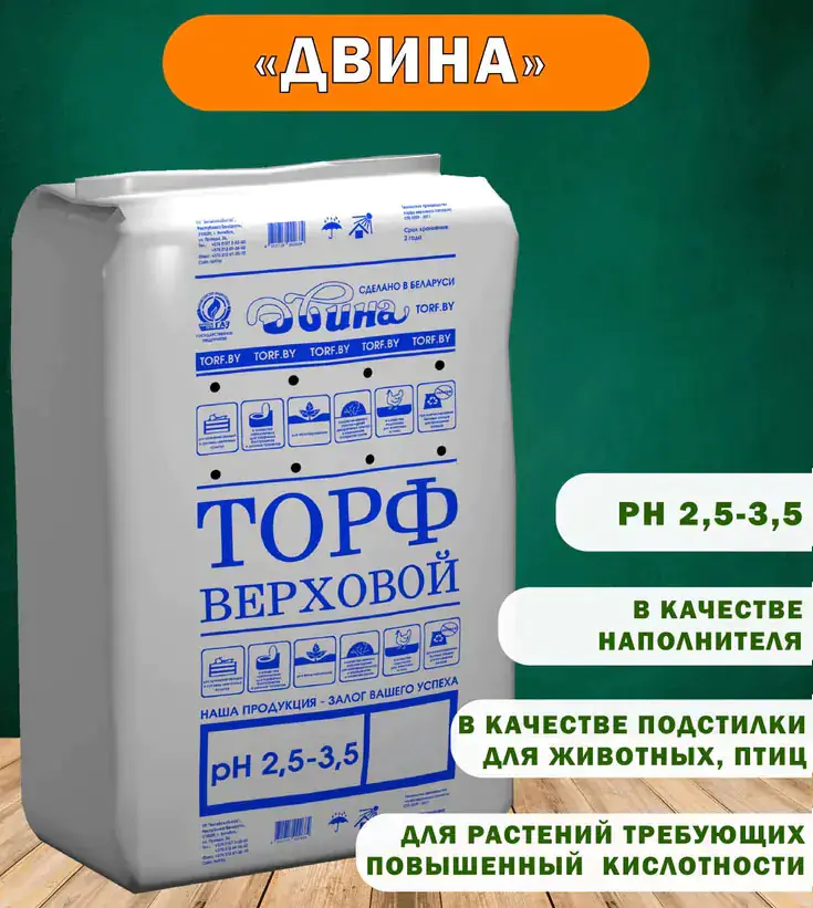 Торф верховой, Азот(N) - Фосфор (P2O5) - Калий (K2O).
