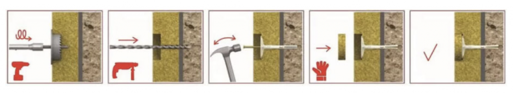 - Возможно использование дюбелей с металлическим гвоздем.