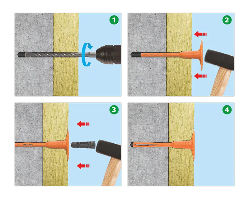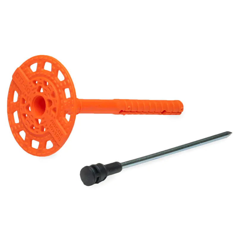 Дюбель тарельчатый ЕКТ DTI-10-120 – крепежная система, которая используется для фиксации теплоизоляционных плит, в том числе в системах штукатурных и навесных фасадов. Подходит для монтажа на основания из бетона, полнотелого кирпича, пустотелого керамического кирпича/блока с пустотами, газосиликата, газобетона, керамзитобетона. Состоит из распорного полипропиленового дюбеля с удерживающим диском и гвоздя из оцинкованной стали с нейлоновой термоголовкой.