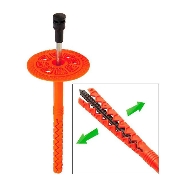 • Дюбель с двухсекционной распорной зоной изготовлен из полипропилена.