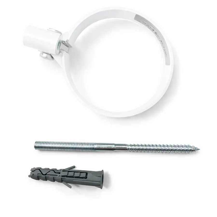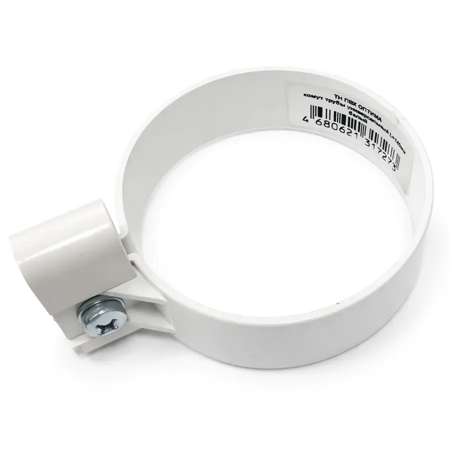 Хомут трубы ТН Оптима является элементом водосточной системы для скатной кровли в малоэтажном строительстве. Хомут трубы предназначен для надежной фиксации водосточных труб к фасаду здания. Длина шпильки 140 мм, диаметр шпильки 8 мм, диаметр хомута 80 мм. Цвет белый.