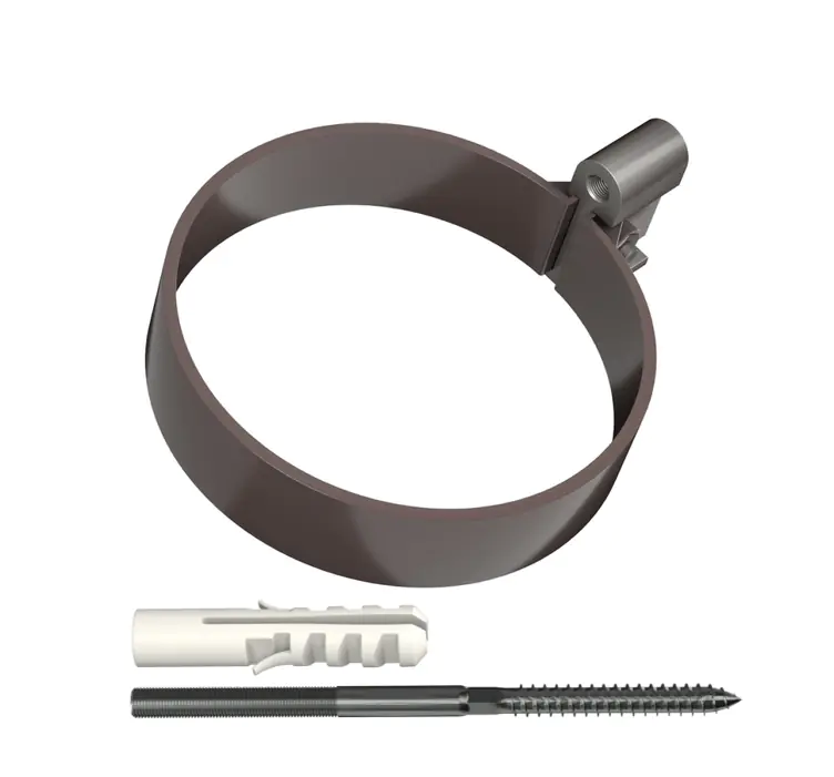 Хомут трубы ТН Оптима является элементом водосточной системы для скатной кровли в малоэтажном строительстве. Хомут трубы предназначен для надежной фиксации водосточных труб к фасаду здания. Длина шпильки 140 мм, диаметр шпильки 8 мм, диаметр хомута 80 мм. Цвет: темно-коричневый.