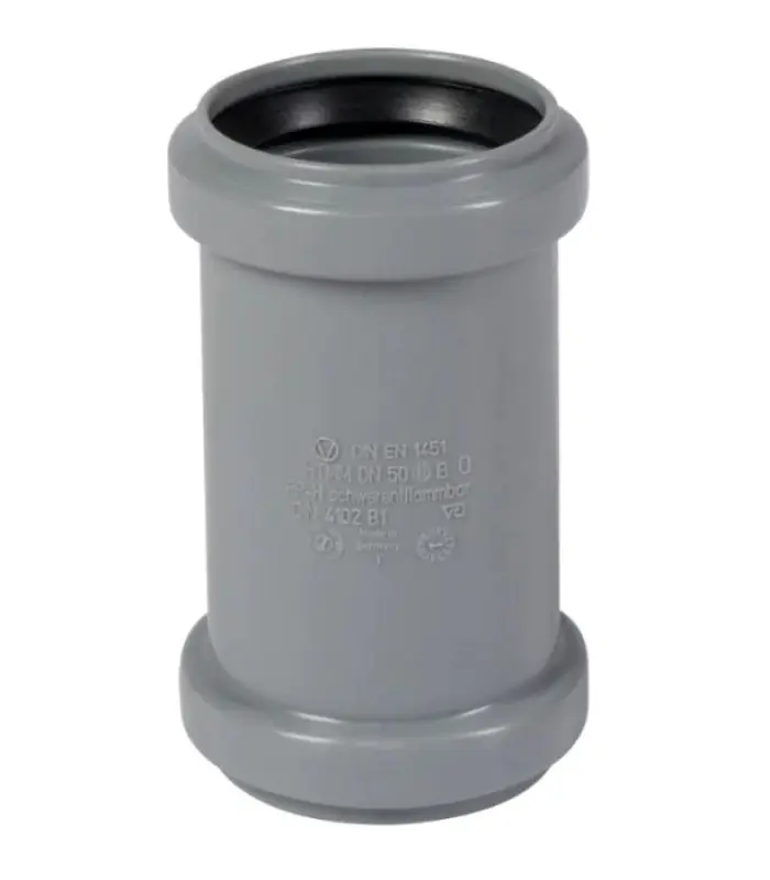 - Для соединения двух отрезков внутренних канализационных труб с гладкими краями (без раструба).