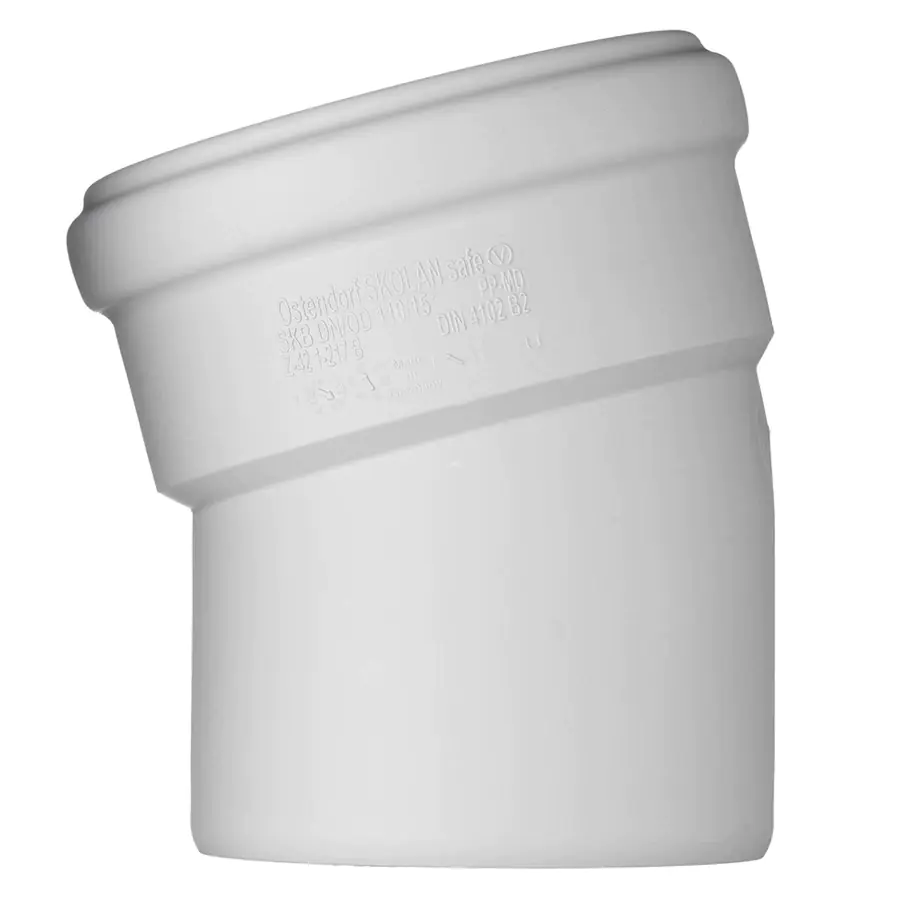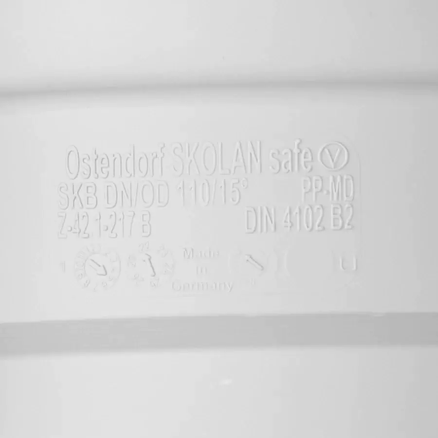Отвод бесшумной канализации Ostendorf Skolan 110 мм, 15 градусов используется для обустройства поворотов трубопровода и соединению элементов системы под необходимым углом.