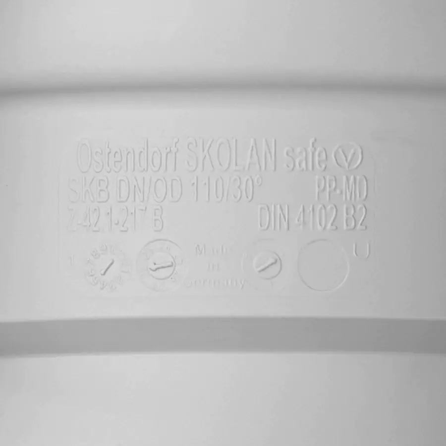 Отвод бесшумной канализации Ostendorf Skolan 110 мм, 30 градусов используется для обустройства поворотов трубопровода и соединению элементов системы под необходимым углом.