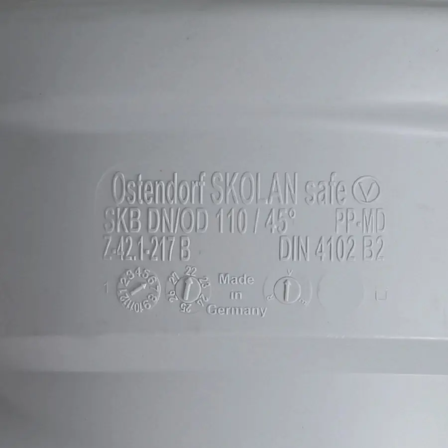 Отвод бесшумной канализации Ostendorf Skolan 110 мм, 45 градусов используется для обустройства поворотов трубопровода и соединению элементов системы под необходимым углом.