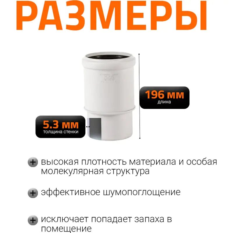 Патрубок компенсационный бесшумной канализации Ostendorf Skolan 110 мм предназначен для компенсации линейных расширений труб возникающих в результате нагрева. Также, за счет удлиненного раструба, используется в ремонтных целях при переборке стояков, замене поврежденных участков и врезки дополнительных элементов в действующую систему.
