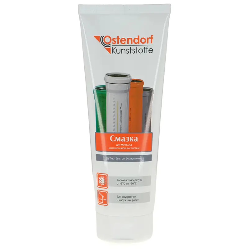 - Смазка Ostendorf SL предназначена для монтажа наружных и внутренних систем водоотведения.