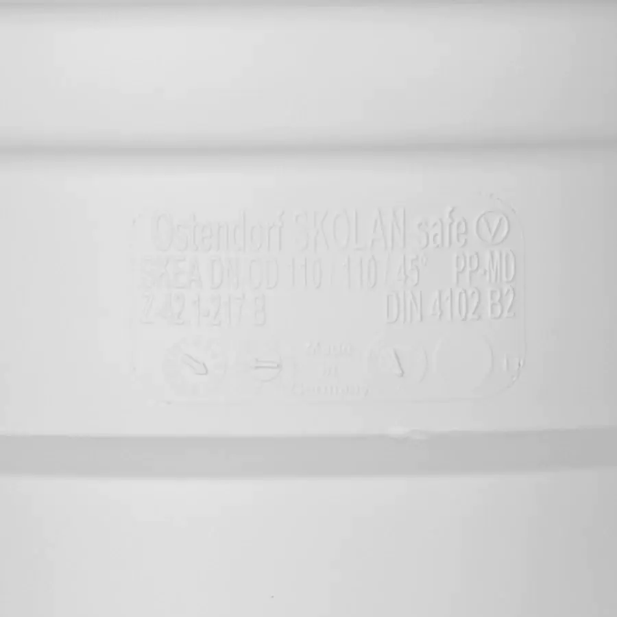 Тройник бесшумной канализации Ostendorf Skolan 110х110 мм, 45 градусов предназначен для соединения отводных(дополнительных) линий трубопроводов и точек подключения сантехнических приборов в одну систему водоотведения под определённым углом.