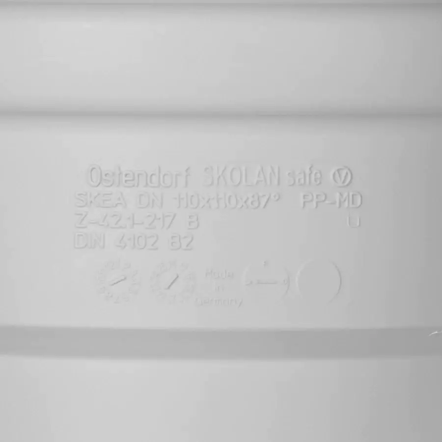 Тройник бесшумной канализации Ostendorf Skolan 110х110 мм, 87 градусов предназначен для соединения отводных(дополнительных) линий трубопроводов и точек подключения сантехнических приборов в одну систему водоотведения под определённым углом.