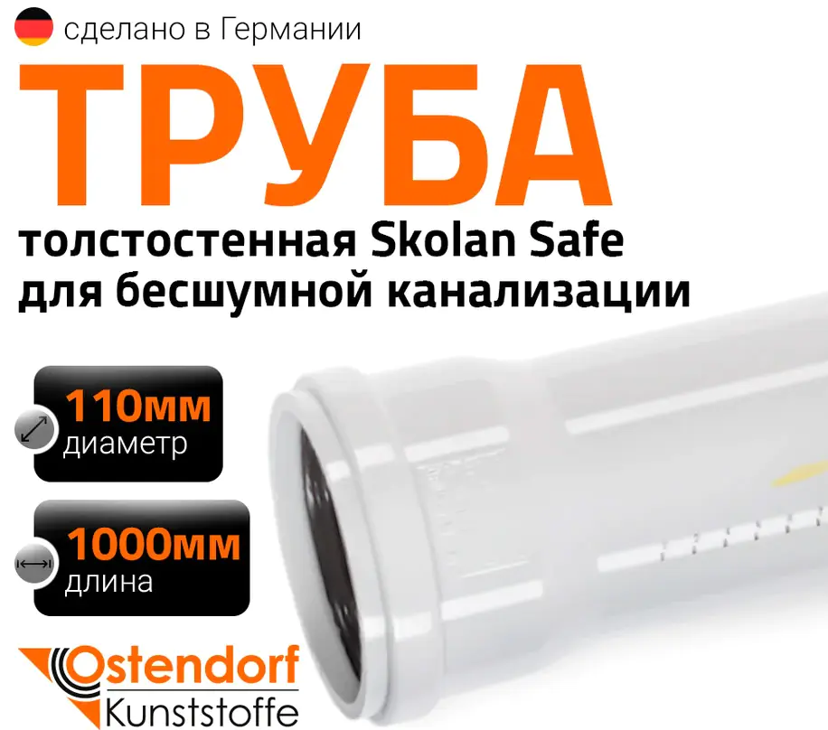 Труба бесшумной канализации Ostendorf Skolan 110х1000 мм предназначена для отведения сточных вод внутри зданий и обеспечения комфорта по шумоизоляции. Она оснащена раструбным соединением и немецким уплотнительным кольцом, что обеспечивает простоту и надежность монтажа.
