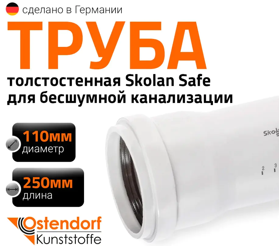 Труба бесшумной канализации Ostendorf Skolan 110х250 мм предназначена для отведения сточных вод внутри зданий и обеспечения комфорта по шумоизоляции. Она оснащена раструбным соединением и немецким уплотнительным кольцом, что обеспечивает простоту и надежность монтажа.