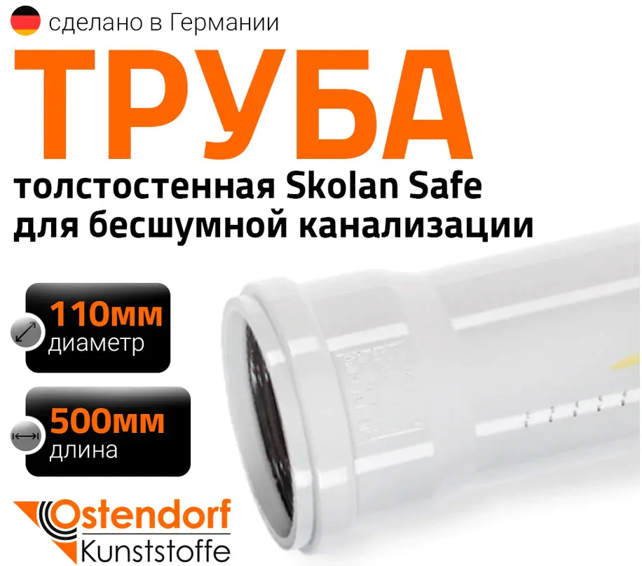Труба бесшумной канализации Ostendorf Skolan 110х500 мм предназначена для отведения сточных вод внутри зданий и обеспечения комфорта по шумоизоляции. Она оснащена раструбным соединением и немецким уплотнительным кольцом, что обеспечивает простоту и надежность монтажа.