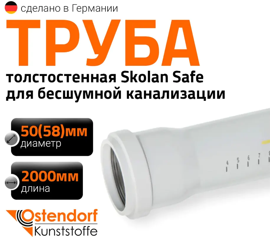 Труба бесшумной канализации Ostendorf Skolan 58х2000 мм предназначена для отведения сточных вод внутри зданий и обеспечения комфорта по шумоизоляции. Она оснащена раструбным соединением и немецким уплотнительным кольцом, что обеспечивает простоту и надежность монтажа. Для присоединения труб, сифонов и прочих фасонных частей диаметром 50 мм, потребуется переход 58х50 мм.