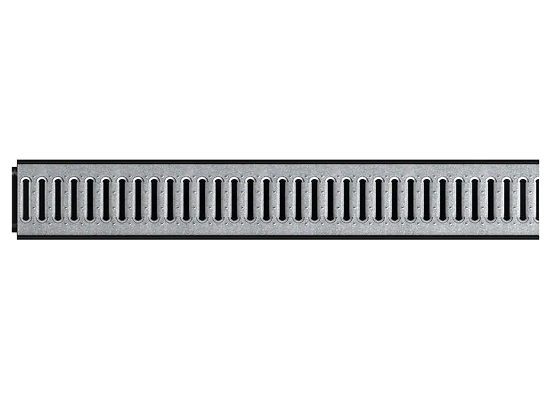 Канал пластиковый системы Lite из вторичного ПЭ-ПП. Сформированное отверстие для подключения труб Ø 110 для выпуска через дно лотка. Специальный паз для подключения других лотков под углом 90º и специальным пазом для распила лотка. Оцинкованная решетка с безболтовым креплением. Класс нагрузки А 15.