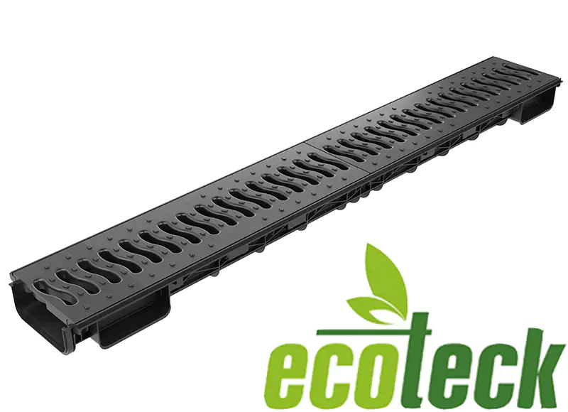 Канал пластиковый системы Lite из вторичного ПЭ-ПП. Сформированное отверстие для подключения труб Ø 110 для выпуска через дно лотка. Специальный паз для подключения других лотков под углом 90º и специальным пазом для распила лотка. Полипропиленовая решетка с антискользящим покрытием. Крепление решетки безвинтовое. Два варианта цвета решеток: черный и металлик. Класс нагрузки А 15.