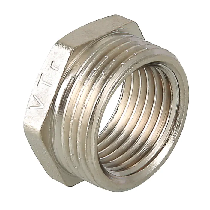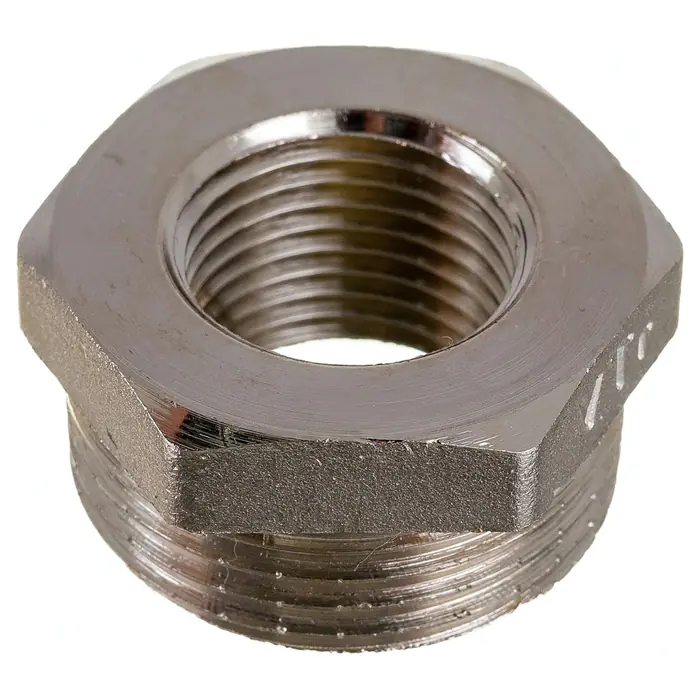 Футорка – фитинг, обеспечивающий соединение труб разного типоразмера, подключение трубопровода к элементу системы с большим диаметром присоединительного патрубка, ремонт (замену) поврежденной резьбы. Изделие выполнено из латуни марки CW617N, никелировано. Резьба – наружная/внутренняя, по типу – трубная цилиндрическая, совместимая с наружной конической (ГОСТ 6211).