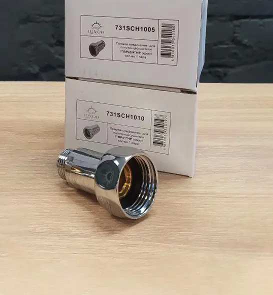 Прямое соединение предназначено для бокового подключения полотенцесушителей к системе горячего водоснабжения или отопления. Резьбовой фитинг представляет собой муфту с накидной гайкой с одной стороны и штуцером с другой.