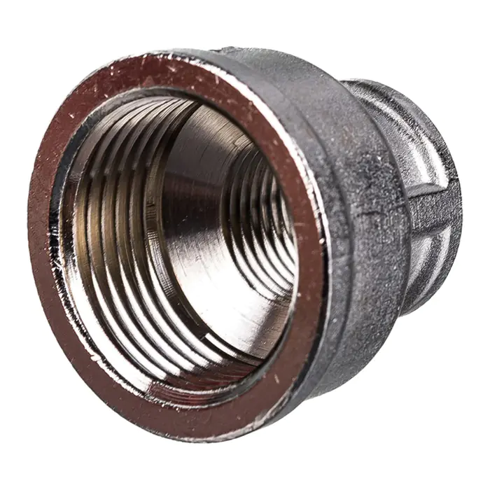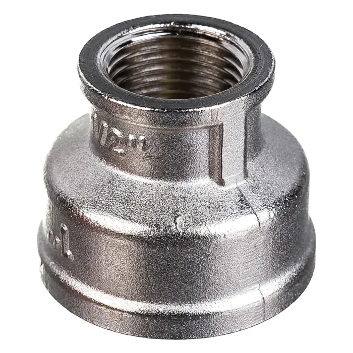 Муфта переходная1"х1/2" вн.-вн. Valtec – латунная никелированная муфта для перехода с одного диаметра трубы на другой. Резьба – внутренняя/внутренняя, цилиндрическая трубная по ГОСТу 6357 (ISO 228, EN 10226), совместима также с наружной конической трубной резьбой по ГОСТу 6211 (ISO R7).