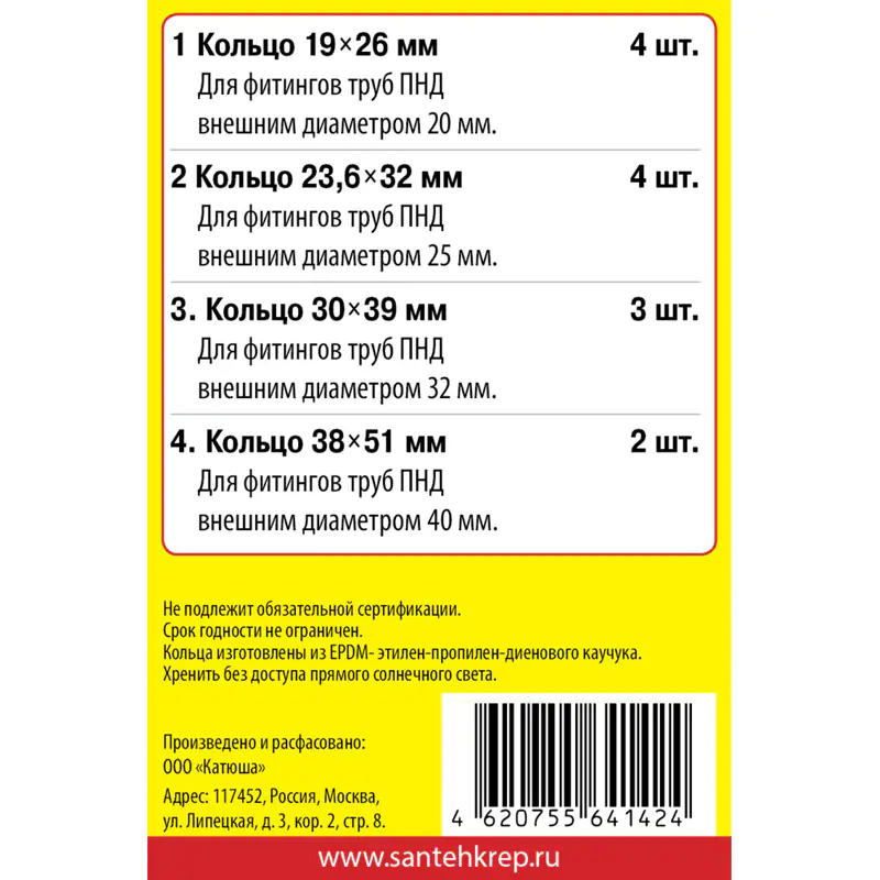 Набор сантехнических прокладок "Сантехник №10" используется для ПНД фитингов.