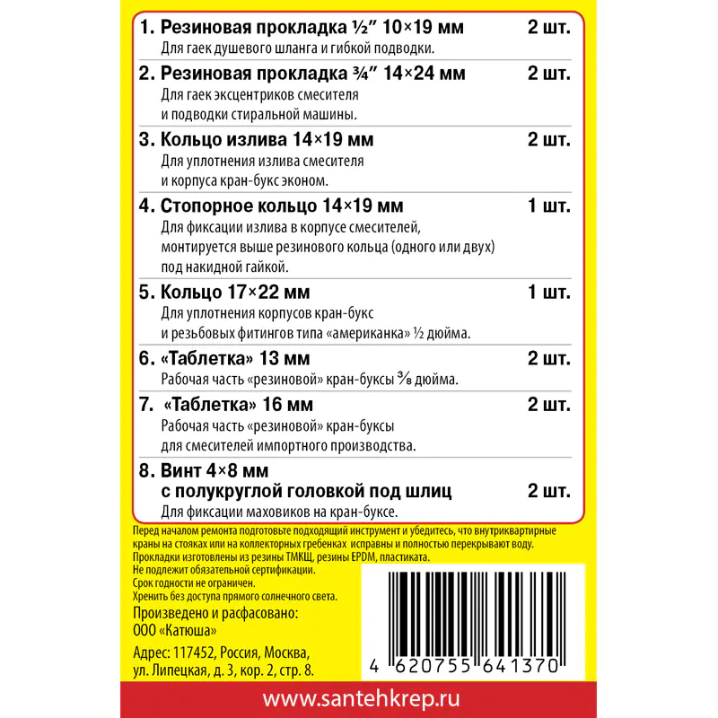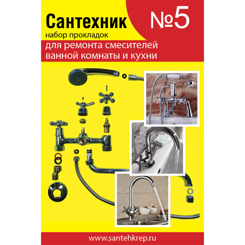 Набор сантехнических прокладок и колец "Сантехник №5" используется для ремонта смесителя.