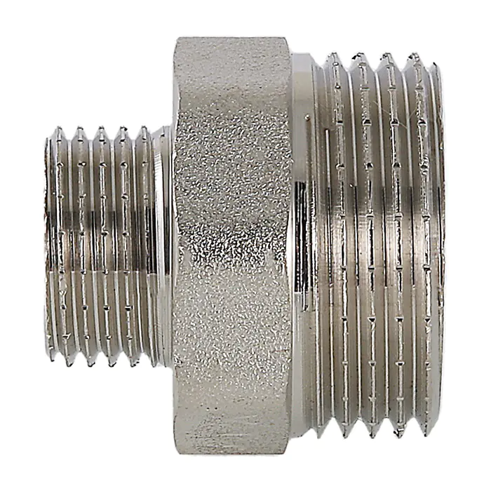 Переходной ниппель 1х1/2 нар.-нар. Valtec – специализированный металлический фитинг с двусторонней конструкцией, где на каждом выходе расположена наружная резьба. Изделие обеспечивает переход с одного размера на другой для возможности соединения межу собой различных элементов трубопроводных систем.