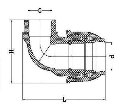 - Тип фитинга: отвод с внутренней резьбой;
