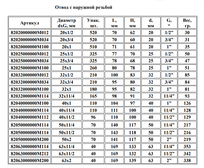 Отвод Unio с наружной резьбой применяется в системе питьевого и технического водоснабжения и предназначено для соединения трубопровода из ПНД со стальным трубопроводом без сварки, использования специальных инструментов и жидкого герметика. Код товара: 82032000000M100