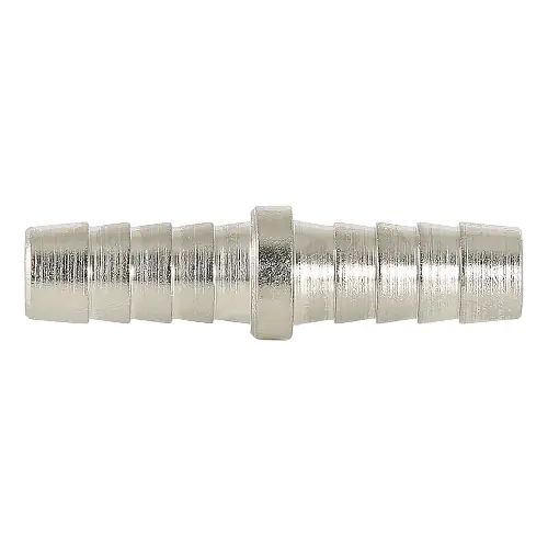 Соединитель для шланга (штуцерный ниппель) выполнен из сантехнической латуни высокого качества CW617N, защищенной гальваническим покрытием из никеля. Фитинг обеспечивает эффективное соединение между собой двух шлангов. Размер штуцера – 12 мм.