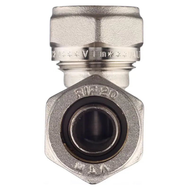 Угольник обжимной Valtec предназначен для соединения двух металлополимерных (металлопластиковых) труб равного диаметра под углом 90° друг к другу. Диаметр труб 20 мм. Может использоваться в системах питьевого и хозяйственного водопровода, горячего водоснабжения, отопления, а также на технологических трубопроводах, транспортирующих жидкости, не агрессивные к материалам фитинга.