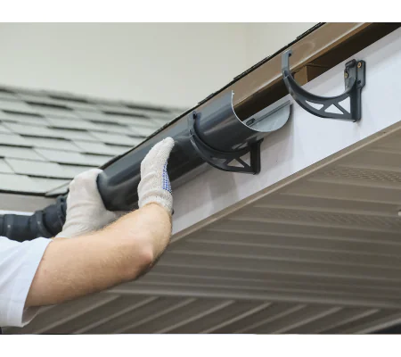 С помощью такого кронштейна осуществляется установка водосточных желобов на карнизе кровли.