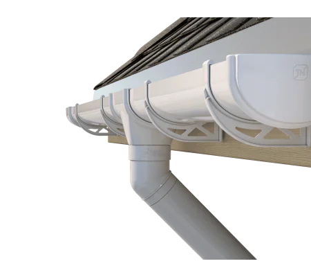 Воронка осуществляет отведение дождевой и талой воды из желоба в водосточные трубы. Соединение с желобом происходит с помощью защелок с резиновыми уплотнителями.