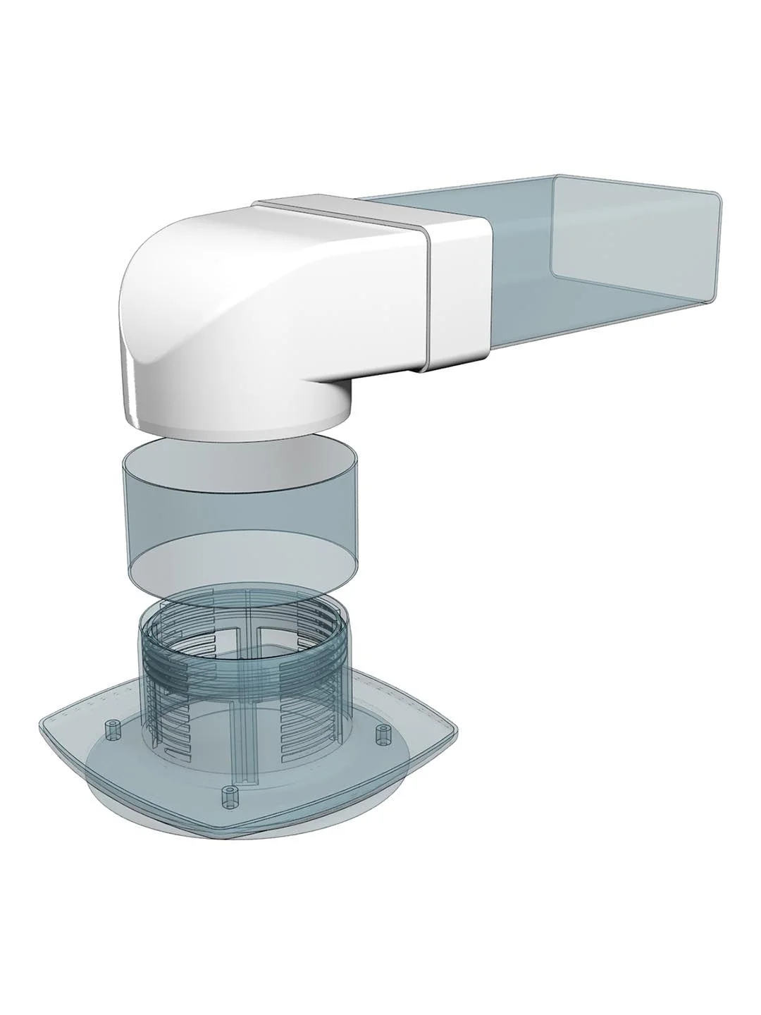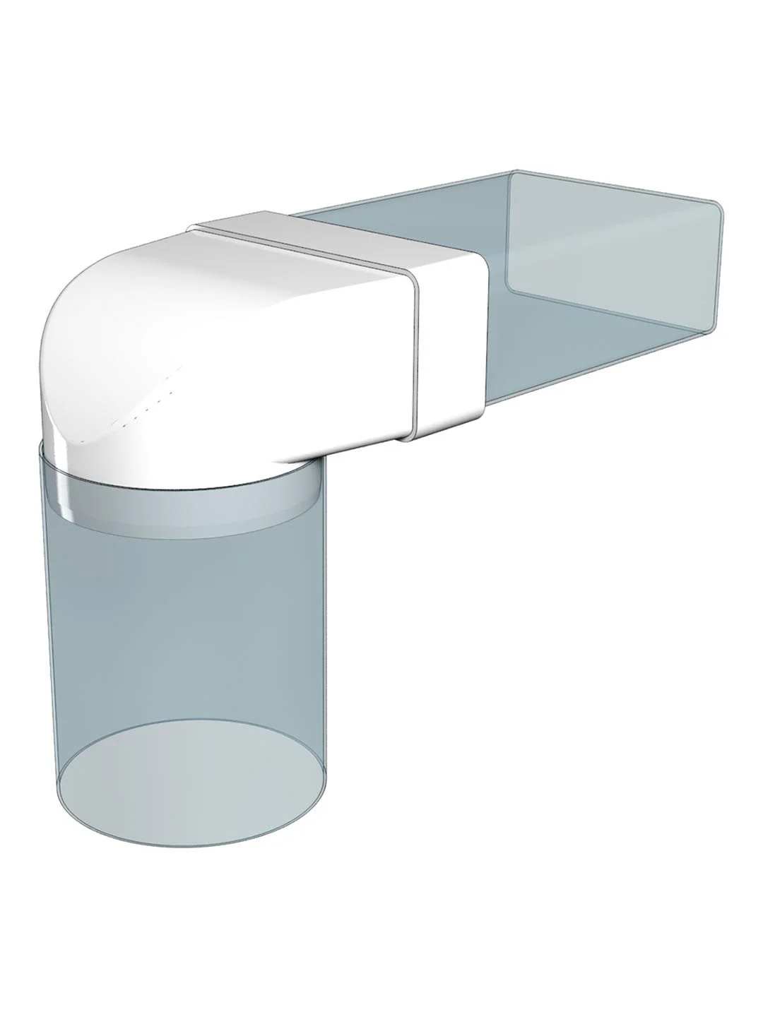 Соединительное колено 90º для плоских и круглых каналов 204х60/150 мм. Применяется для соединения круглых и плоских каналов под углом 90 градусов.