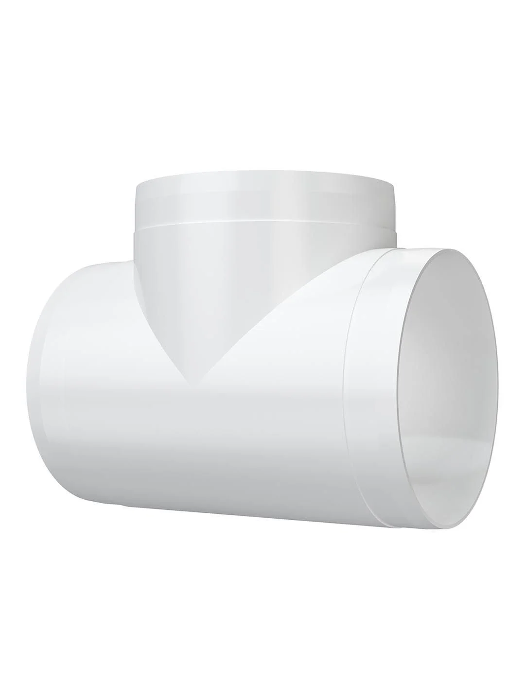 Тройник пластиковый для круглых каналов диаметром 150 мм. Применяется для соединения трех воздуховодов одного диаметра под углом 90º.