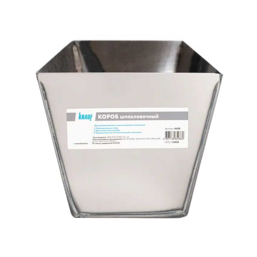 Короб изготовлен из нержавеющей стали, это увеличивает срок использования данного изделия, что в свою очередь исключает следы попадания от ржавчины в раствор, как если бы это было обычное железо.